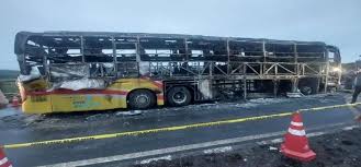 A crowded passenger bus traveling to Nepal’s capital plunged off a mountain highway early Monday, killing 19 people, including a British national, and injuring 25 others, authorities said, [DATE.]. The bus veered off the Prithvi Highway after midnight, rolled down a steep slope and landed on the banks of the Trishuli River near Benighat,
