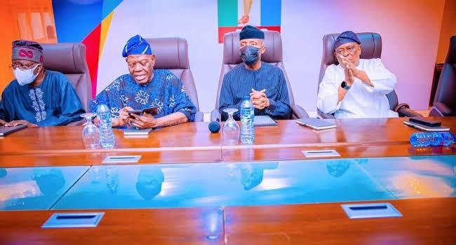 At the Governor’s Lodge in Marina, Lagos, on Sunday, former governors Chief Bisi Akande (Osun), Chief Olusegun Osoba (Ogun), and Akinwunmi Ambode (Lagos) joined Governor Babajide Sanwo-Olu for a high-level meeting. APC Lagos Chairman Cornelius Ojelabi, former state chairman Tunde Balogun, and members of the Lagos Governance Advisory Council (GAC) were among the other guests.