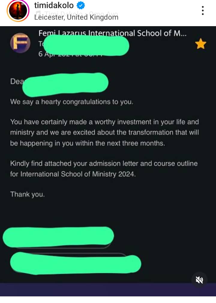 To support his argument, Dakolo shared screenshots of emails he received after applying for Apostle Lazarus’ school of ministry. The emails showed that students were required to pay $150 per person for enrollment. This, Dakolo argued, contradicted the pastor’s stance on gospel artists charging for their performances.